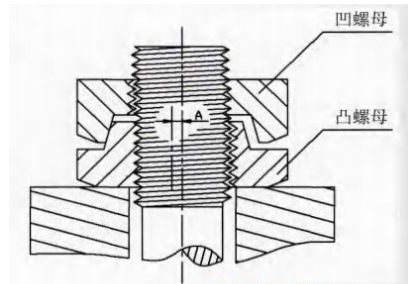 HARDLOCK是雙螺母(見圖3),內(nèi)螺母外側(cè)設(shè)有偏心的突起;外螺母為普通螺母結(jié)構(gòu),其內(nèi)側(cè)設(shè)有同心的凹槽;外螺母備緊時內(nèi)螺母的外側(cè)凸起與螺栓不同心,內(nèi)螺母的偏心突起與螺栓受到外螺母的擰緊擠壓產(chǎn)生徑向力,相當(dāng)于在螺紋間隙中增加了鍥子,螺紋全方位鎖緊。